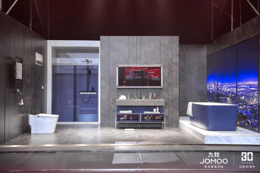 在此前的消博会上,九牧融合声、光、电、全息投影等多种技术,全方位展示了卫浴空间的前沿解决方案。其中,九牧臻选宝蓝M9套间用全场景的大数据智能物联技术打造卫浴空间,成为现场的焦点之一,预计这款产品将在上海展中亮相。