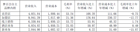 线下门店(包括境内外直营店和经销店)营收13.47亿元,同比增长124.73%;线上销售营收1.98亿元,同比增长5.93%;大宗业务营收22.22亿元,同比增长39.95%。