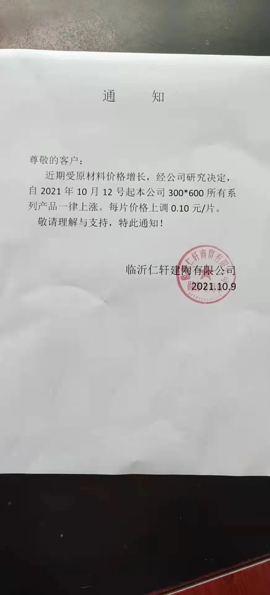 另一方面,临沂又迎来新一轮的涨价。陶城君注意到,此次涨价的产品涵盖全品类产品。各企业基本保持一致,如: