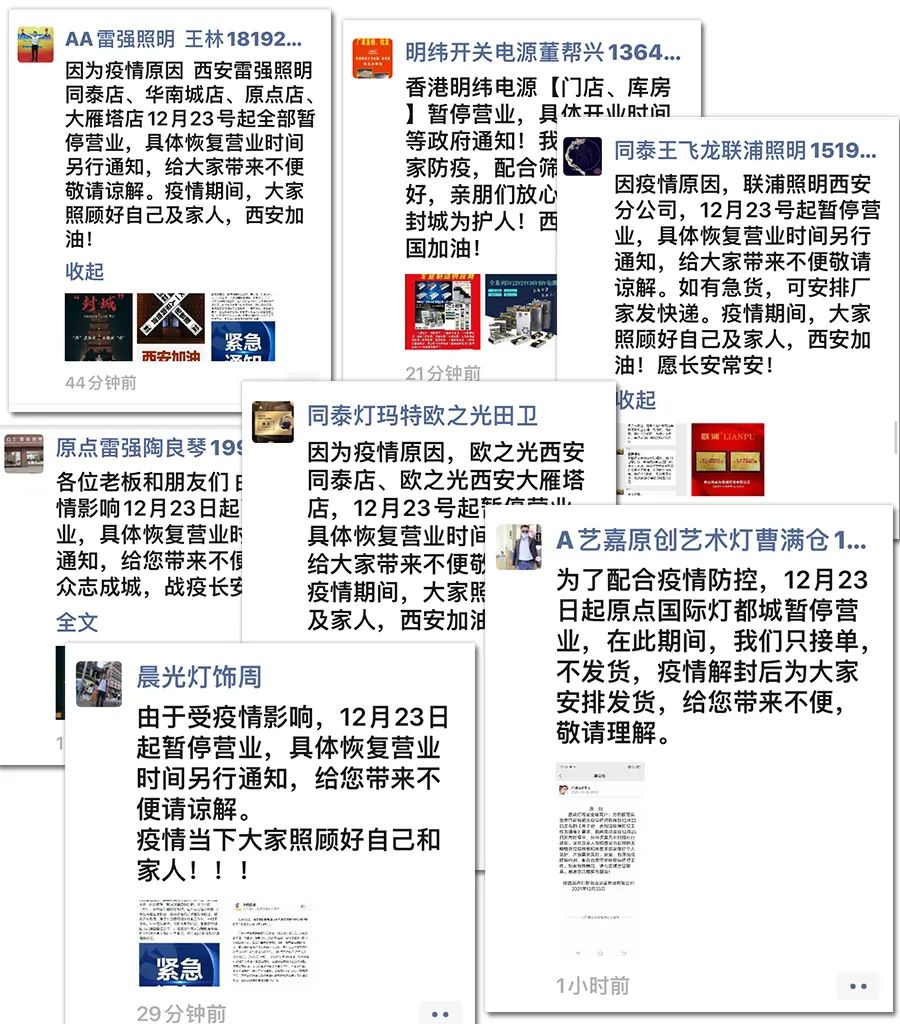 12月23日,陕西原点灯都商业运营管理有限公司、大明宫建材家居、陕西光耀子午照明科技有限公司等相继发布暂时停业通知。