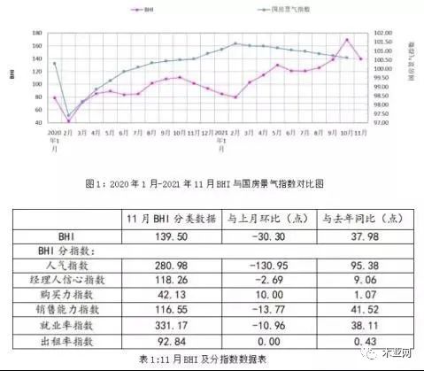 中国建筑材料流通协会发布11月全国建材家居景气指数(BHI)为139.50,环比下降30.30点,同比上涨37.98点。全国规模以上建材家居卖场11月销售额为1283.71亿元,环比下降10.57%,同比上涨55.33%;2021年1-11月累计销售额为10578.67亿元,同比上涨56.26%。